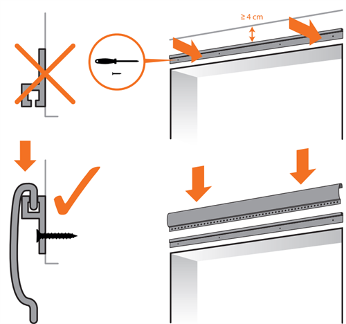 Bevestig het h-profiel met de inkeping naar boven. Het pootje van de 'h' wijst naar beneden. Zorg dat je 4cm ruimte hebt, die je nodig hebt voor totale montage van het h profiel met brede strip. Anders kun je het gordijn er niet goed inhangen.